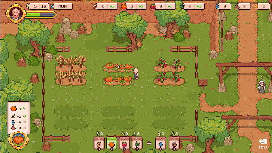 Grow crops, harvest them at the end of the day, replenish your energy, sell surplus produce, interact with characters, determine who deserves your assistance (or purposely refuses) at the end of the week, and see the results of your decisions.