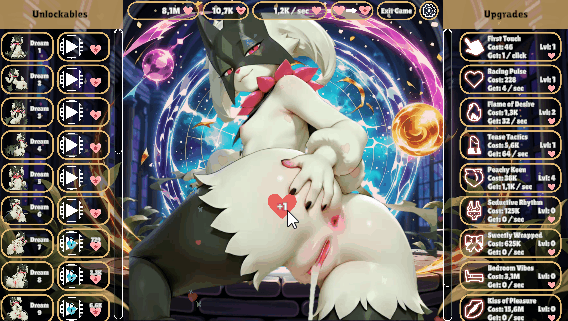 In this entertaining NSFW 18+ idle clicker, explore Meowca’s fantastical universe! As you get closer to Meowca, you can tap, upgrade, and unlock unique scenarios.