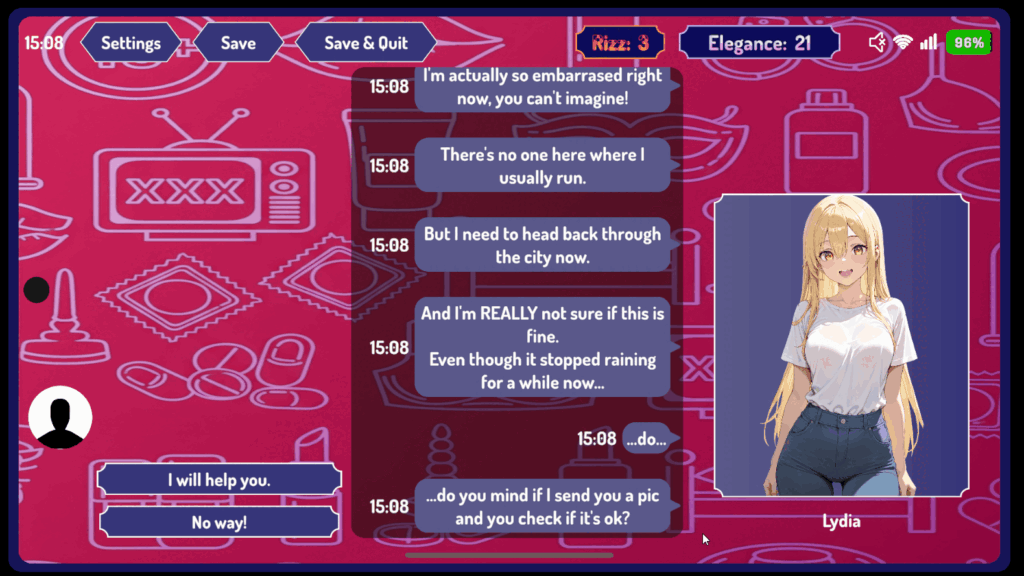“A skill-based adult game where chat choices and rhythm performance directly affect how women respond to you.”