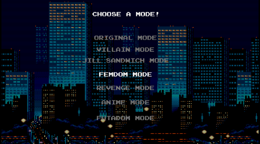 Hi! I’m mod_princess, and I made Streets of Ryona, the Ryona Fighter series, the Bao vs The World series, Ryona 98 Ultimate, and a few other nude/ryona ROM hacks and sexy PC games in Unity.
